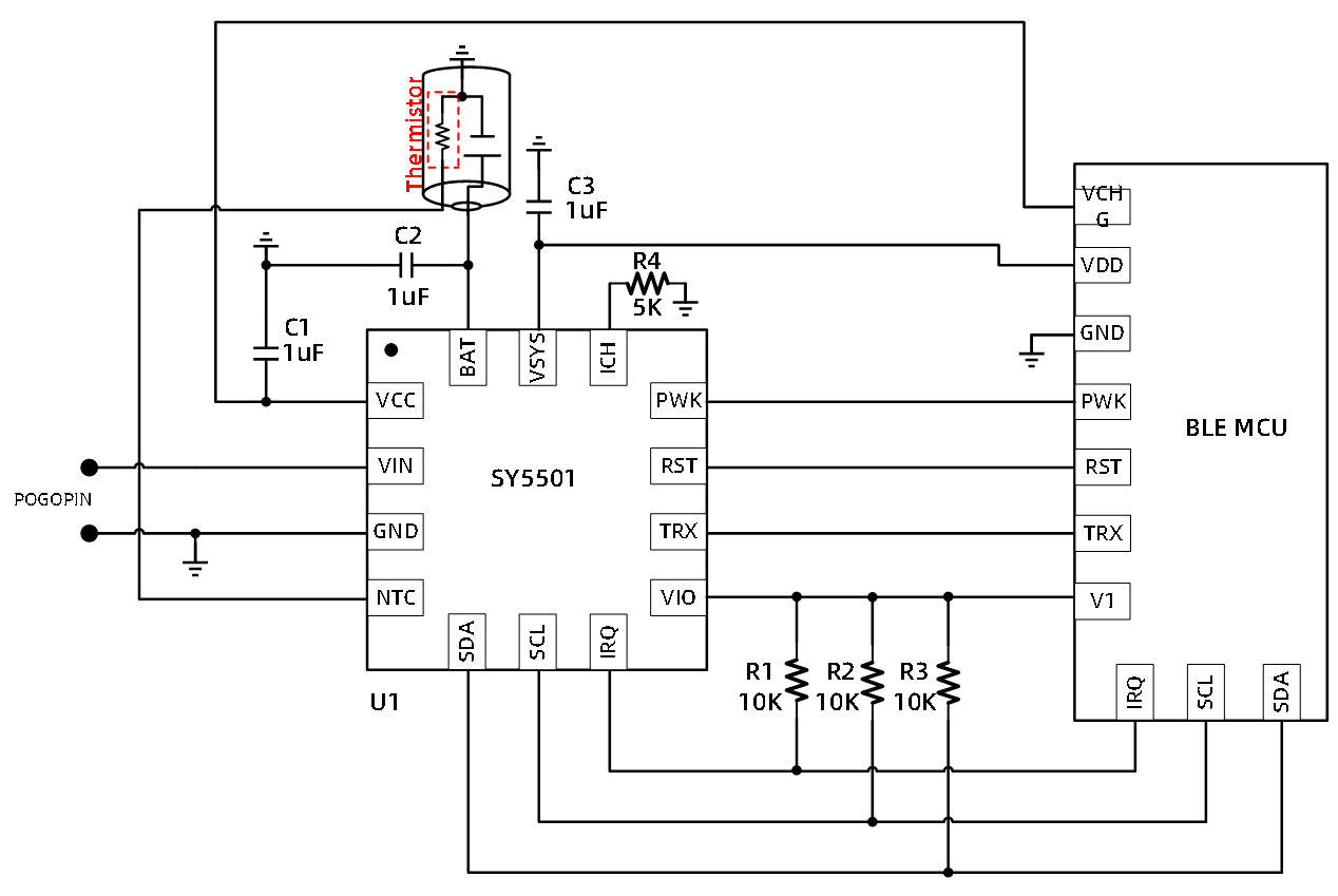 SY5501最大充电电流外部电阻可调,同时支持恒流充电ICC、浮充电压VFLOAT档位I2C调节。芯片集成NTC检测和保护功能,更安全的对电池进行充放电。SY5501带有电池放电保护和shipmode功能,可以实现耳机系统低功耗需求。